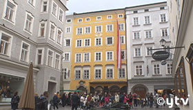 ゲトライデ通りの中心にある、「モーツァルト」が生まれたとされる生家!