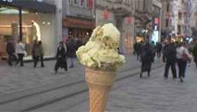 名物濡れバーガーやとトルコアイスなどストリートフードが楽しめる。