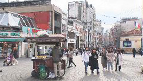 イスタンブール新市街の目抜き通り。タクシム広場を起点として南西に1.4㎞ほど続いている。