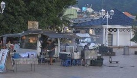 パペーテ港に開かれるトラックを改造した移動式屋台が集まる場所。タヒチのローカルフードが楽しめる。