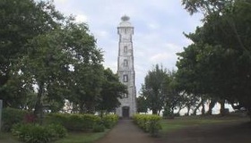 火山の溶岩が砕けてできた黒い砂のビーチと、1867年に建てられた長い歴史のある灯台が特徴的な観光スポット。