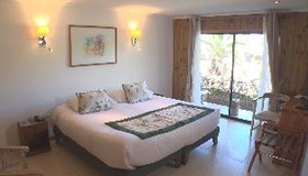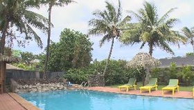ハンガロアの町の中心から徒歩10分ほど、レセプション棟から続くホテル棟、自然豊かな庭園にコテージが点在する海辺のホテル。30室ある客室は、白を基調に天然木が使われた温かみのある雰囲気。窓の外には海かプールのどちらかを望む。海側にあるレストランからの眺めの良さも魅力。