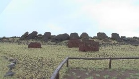頭のない女性の形をした赤いモアイ像が観られるスポットとして、有名な場所。インカ帝国風の石組みであるアフ(祭壇)を見ることができる。