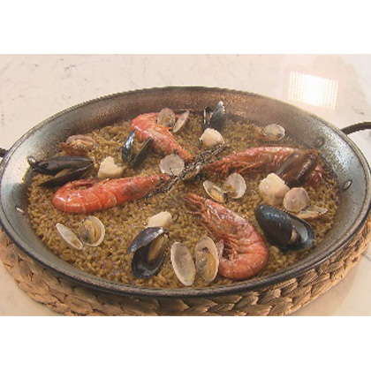 - 看板メニューは「エスクリバパエリア」ムール貝、アサリ、白身魚のうま味が凝縮されたパエリア。