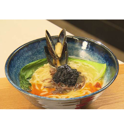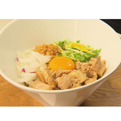 - ラーメンのスープを極限まで濃縮した出汁、厳選された具材、最高の麺を合わせて調理した新感覚の混ぜそば。まずは器から立ち上る香りを楽しんで、全ての具材と麺、濃縮された出汁をかき混ぜて味わう。