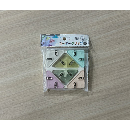 - 紙を束ねるクリップ。角に留めるので折り目がつきにくい
