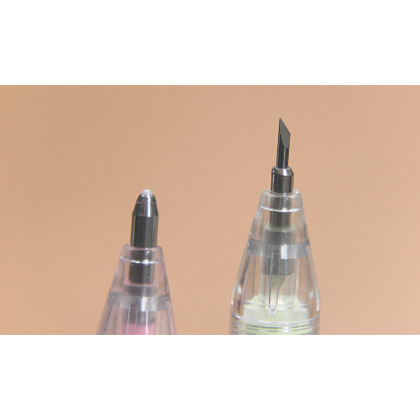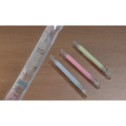 - ペン型のカッターの反対側にのりがついており、ちょっとした作業に便利