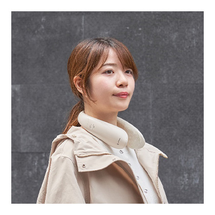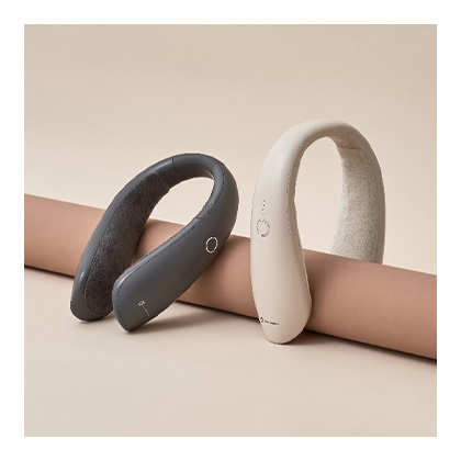- 通勤や通学時に使用できる、USB充電式のコードレスなネックカイロ。