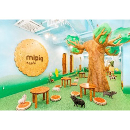 - 2019年3月1日 東京・目黒にオープンした、日本初のマイクロブタカフェ。関西では、大阪・京都の2店舗。