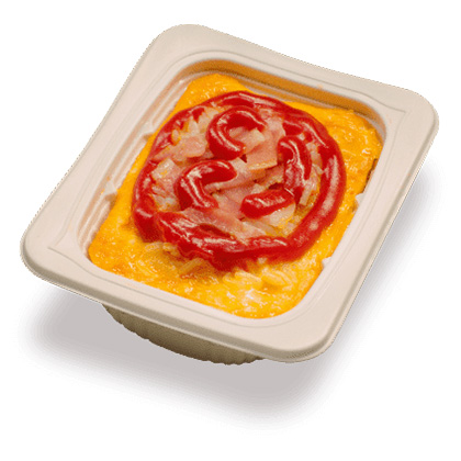 - 手前にもやしを入れて、スライスチーズをのせ、レンジで600W4分加熱する。