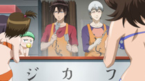 そんな中、ふたりが潰し合ってくれれば好都合と考える神崎と姫川。そして姫川は独自に東条のバイト先を調べ出し、たまたま見かけた古市に伝言。男鹿はベル坊、ヒルダ、古市とともに、東条のバイト先の海の家がある海岸へと向かう。