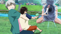大魔王の息子であるにもかかわらず、虫が怖いベル坊。おかげで男鹿は、ベル坊が虫に驚き、泣き出すたびに電撃を浴びせられる日々を送っていた。その仕打ちに耐えかねた男鹿は、ベル坊に弱点克服のための特訓をさせようと、かつて多くの修行者が訪れたという「魔二津(まっぷたつ)」へと向かう。そこには光太を連れた葵の姿が。葵は知り合いに届け物をする祖父の付き添いで魔二津へ来たという。偶然の再会に喜び、葵を誘って休憩を始める男鹿。葵も突然のプチデートにドキドキ。と、ふたりの前に葵の祖父が現れる。大事な孫娘と親しげな男鹿に対し、握手を装い、突然男鹿を投げ飛ばす葵の祖父!葵の祖父は武術の達人だったのだ。さらに挑発する祖父に男鹿も負けじと挑むが、まったく歯が立たず、ついには動けなくなってしまう。そして、この戦いの最中に祖父の大切な届け物が奪われてしまう!逃げてゆく3人組を見つけすさまじい勢いで追いかけてゆく葵の祖父。その後姿を見やりながら、もう一度勝負を挑もうと考える男鹿は……?
