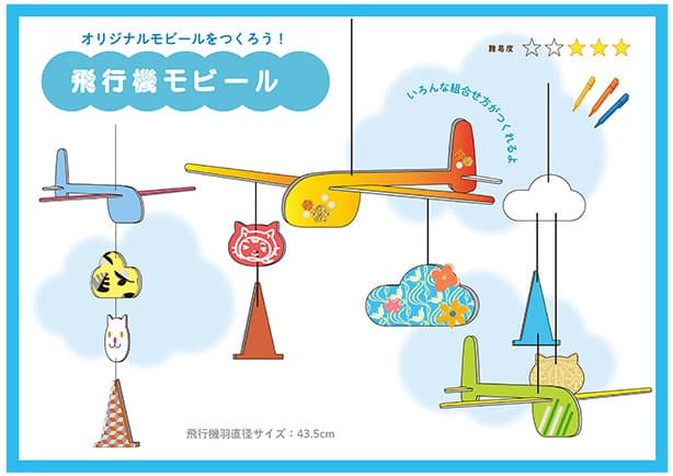 1組1作品。鳥人間コンテストの飛行機をモチーフにした2種類のワークショップから作りたいものを選んでいただきます。小さなお子様も参加可能!