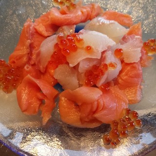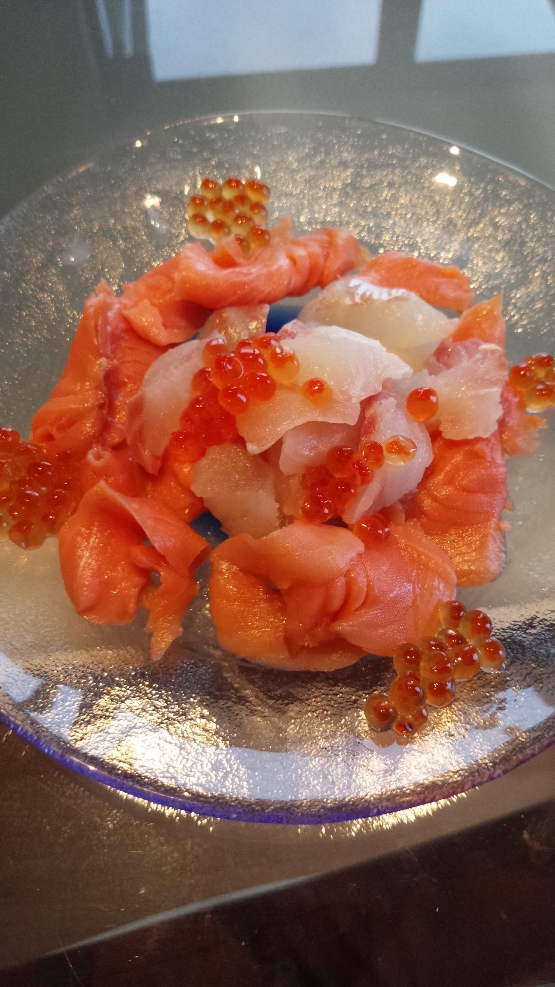 涼しく 先日、カルパッチョ作ってみました。 サーモンと鯛、イクラ添え。 普通に並べるより好評でしたよ。 食欲も減退気味、メニューに困ったときは、お皿と盛り方で工夫すると良いかもです。 前の記事 次の記事