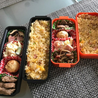 お弁当③ チャーハンっ! お母さま達は、毎朝 大変ですね。 宅の奥さんは、「貴方の趣味が料理で素敵」と そこはお褒めにあずかってます。 チャーハンのほかにキノコとベーコンの炒め、 マカロニサラダ、豚ヒレ肉のオイスター炒めです。 (たこ焼きは市販のモノ) 前の記事 次の記事