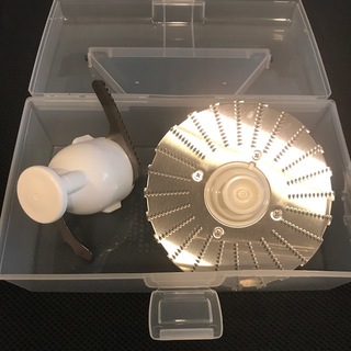 このフードプロセッサーの歯も100均のケースに入れた上で、高い場所にある吊戸棚の