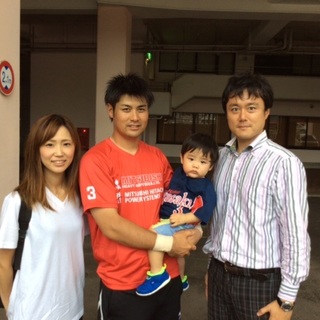 (奥様の里美さん、野原将志さん、長男の悠成くん、本野)