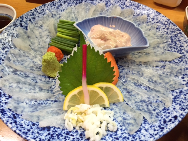 カワハギの活き作り!美しい身と、肝との相性が最高です。