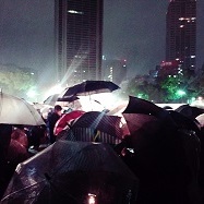 雨の中、傘で灯りを守って。