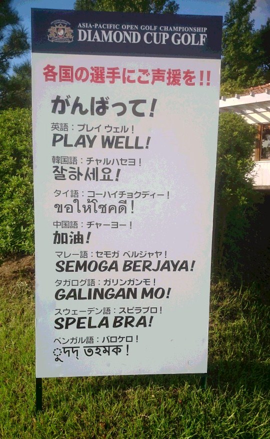 さすが、国際ツアーです。出場選手各国の応援の言葉が。