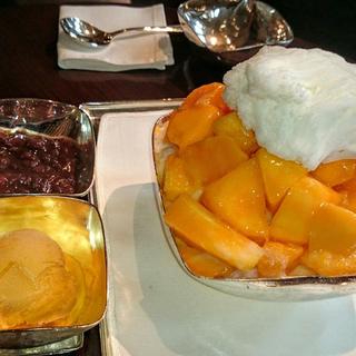 韓国でどうしても食べたかった栄養満点の烏骨鶏のサムゲタンとマンゴーパッピンス(かき氷)。美味しかったです。