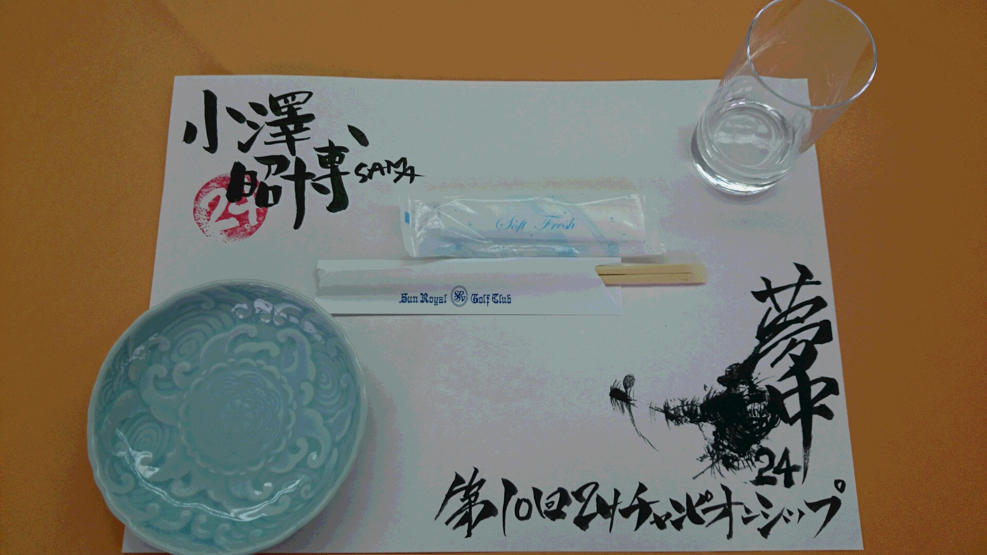 プレー後、パーティー会場のランチョンマットには、参加者一人一人に、ひーやんからの直筆のメッセージが。