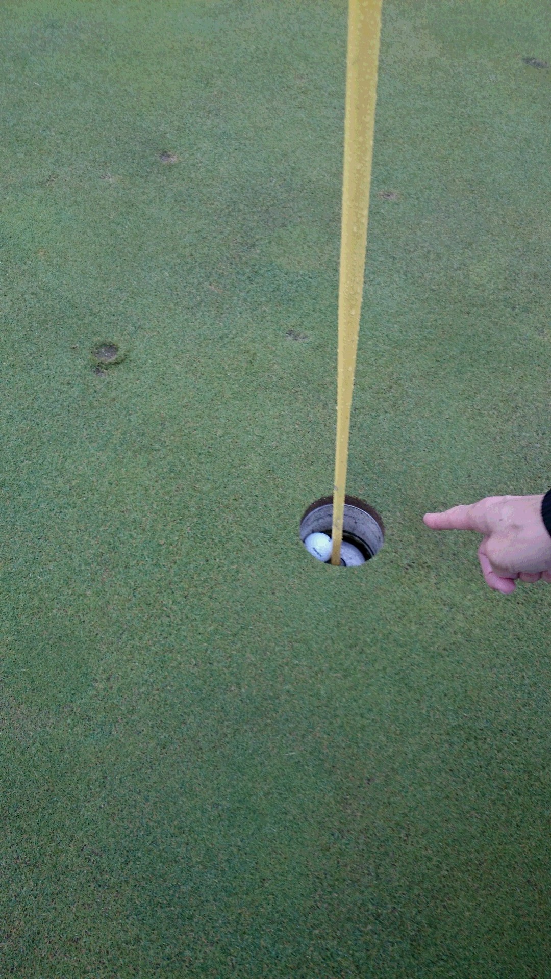 「まさか!!」と思いましたが、冷静に考えて、あの位置に落ちてグリーンからこぼれる訳がなく、
