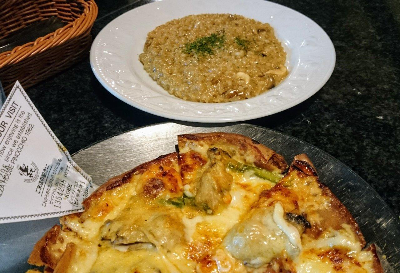 神戸っ子が通うイタリアンで、この時期限定の牡蠣のピザとポルチーニ茸のリゾット。