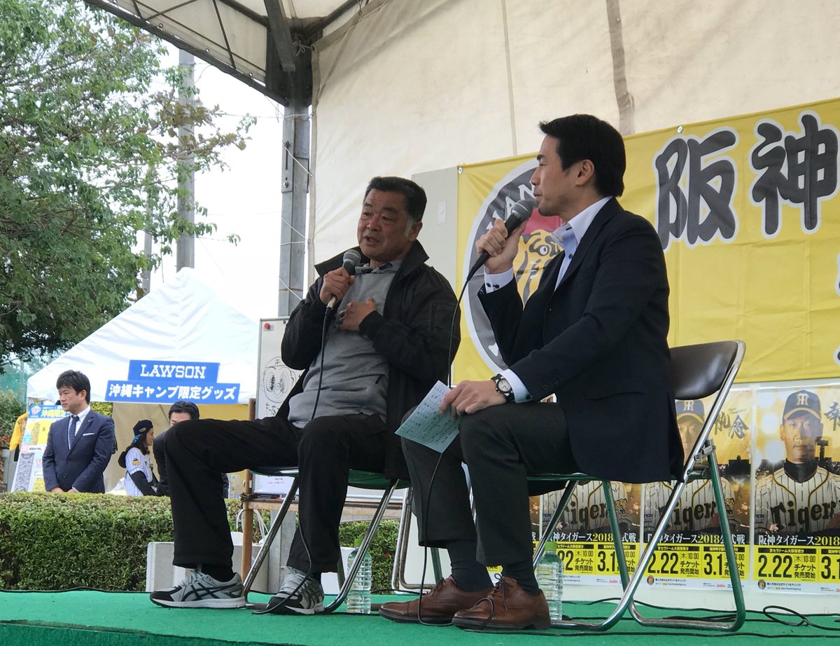 早速、イベントステージで、川藤幸三OB会長とトークショーをしました。
