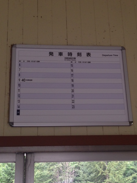 時刻表に度胆を抜きます!午前9時40分が終電。