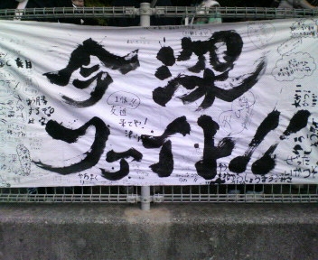 『ぐっさん』こと山口智充さんの直筆の応援旗とユニホームのロゴ。