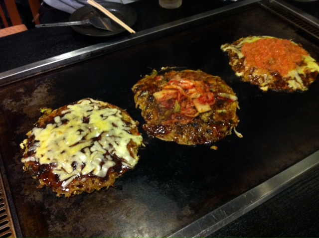 お好み焼きよりは薄く、上に乗せる具材を色々楽しめるんです。
