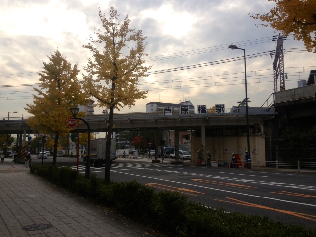 JR芦原橋駅の高架をくぐります。
