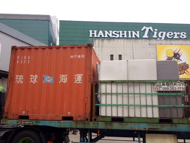 会見を終え外に出たら、早くも沖縄キャンプへの荷出しが始まっていました。
