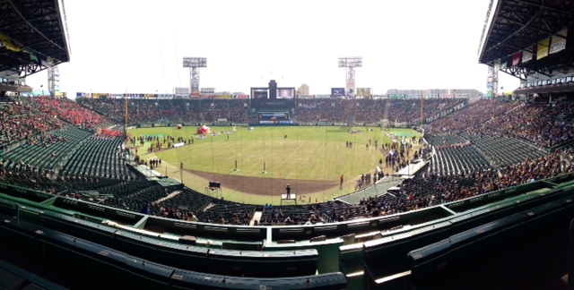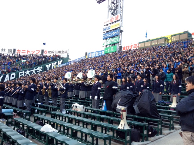 どの試合でも、選手・関係者・スタンドが1つになって校歌の大合唱が行われる。
