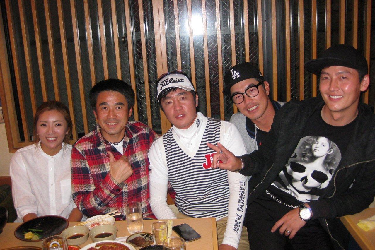昨年日本ツアー賞金ランキング2位のキム・ヒョンソンプロ、同じく5位のS・J・パクプロ、先々週のバンテリンレディースで2位、現在日本女子ツアー賞金ランキング1位のイ・ボミプロ、そして現在他局で放送中の“百年の遺産”主人公の俳優イ・ジョンジンさんと。