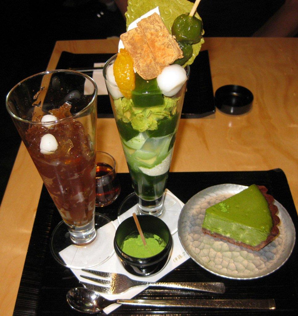 拝観後は・・・宇治と言えば宇治茶。宇治茶を使ったお蕎麦、パフェ、ケーキ、宇治金時など頂きました。