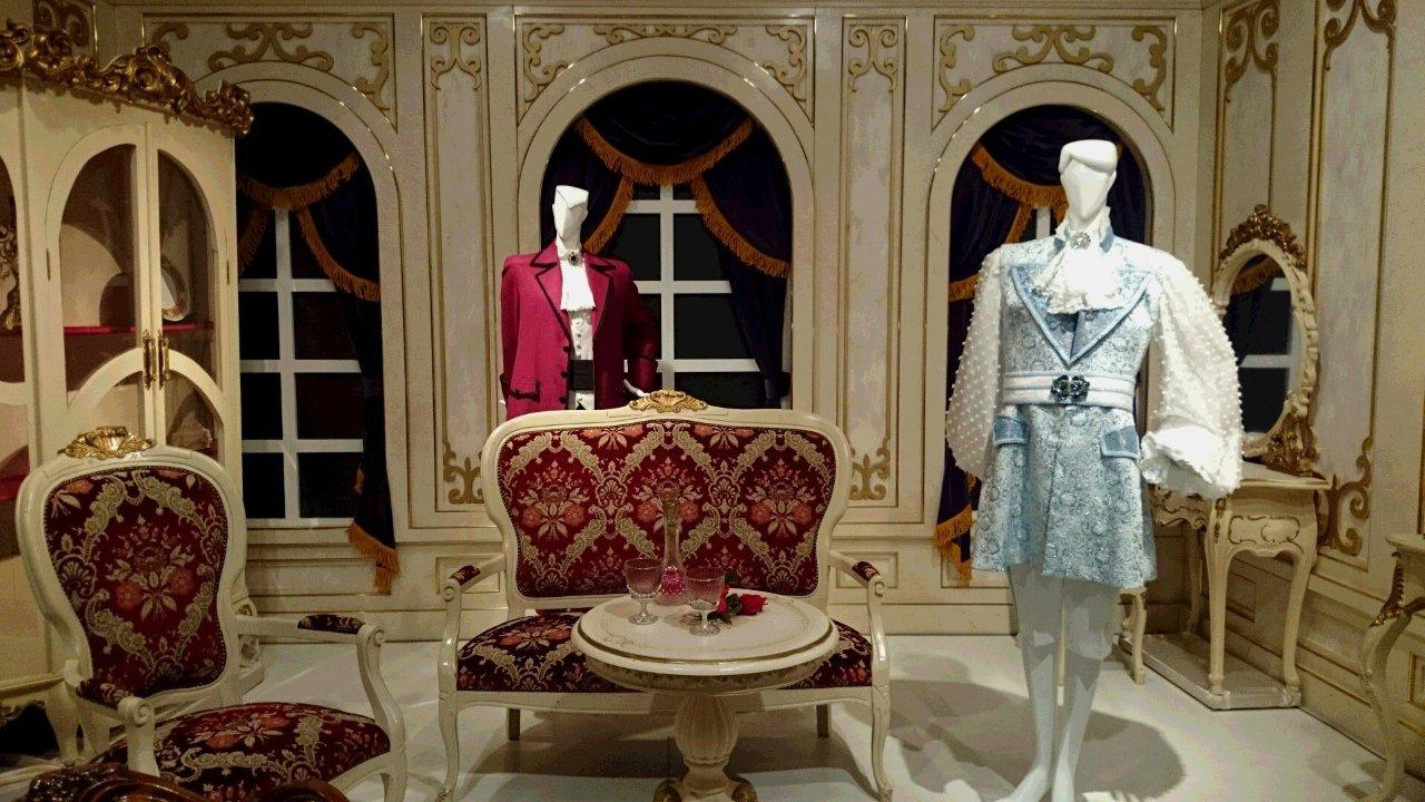 宝塚歌劇の代名詞、“ベルサイユのばら”、宮殿内の再現です。オスカルとアンドレの衣装も展示されています。