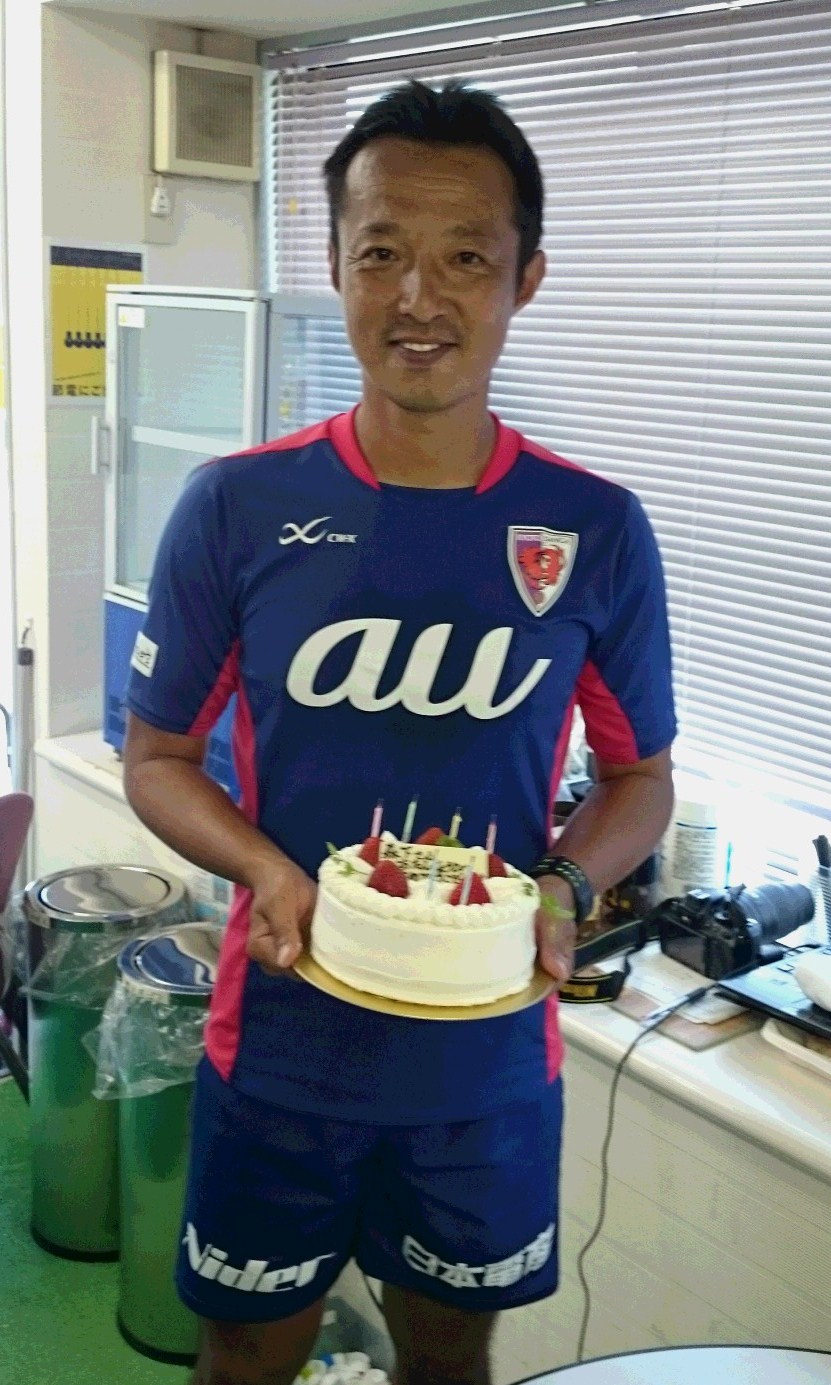 昨日の練習後、京都サンガの担当マスコミ一同で森下仁志コーチの42歳の誕生日をお祝いしました。