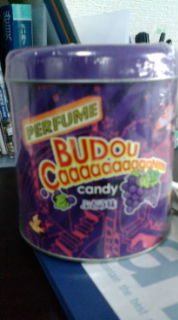 Perfumeの葡萄味の飴が入った缶!