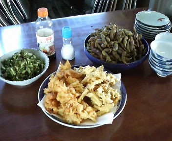 玉ねぎの天ぷらや、さつまいもの天ぷらなど、どれも農園の畑でとって