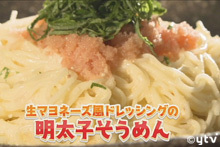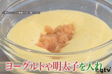 5. ④を器に盛り付け、残りの明太子を散らし、③を天盛にする。