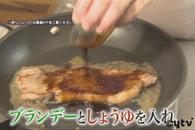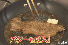 Ⓐの醤油とバターを加えて、肉をからめる。