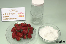 *瓶に、いちご、砂糖と順に入れていき、6つの層になるよう小分けで入れる