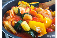 (1)野菜をそれぞれ2~3cm角に切る。ニンニクは、みじん切りにする。