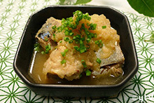 (1)大根おろしは、ザルにあげて軽く水気を切る。