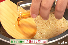 材料:米(450g(3合))、富士手巻きすし酢(150g)、冷水(330g)、仕上げ用富士手巻きすし酢(15g)