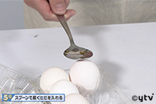 5位 茹でる前にスプーンで卵の尖っていない方にヒビを入れる