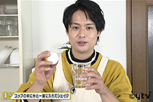 1位 茹でた後にコップの中に少量の水と一緒に卵を入れて5秒シェイク