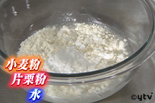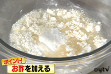 ③ ②に砂糖、レモン汁を加えて混ぜ、さらに薄力粉を加えて混ぜる